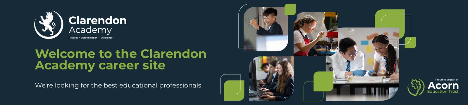Clarendon Academy is a thriving co-educational, non-denominational secondary school and sixth form, educating young people between the ages of 11 and 18. Located in the bustling town of Trowbridge, Wiltshire, and in easy commuter distance from Bath, we pride ourselves on being a centre of excellence and a place where young, enthusiastic children enter in Year 7 and leave us at the end of Year 13 as fully rounded young adults. We are part of the Acorn Education Trust, which provides exciting opportunities to collaborate and improve local education.