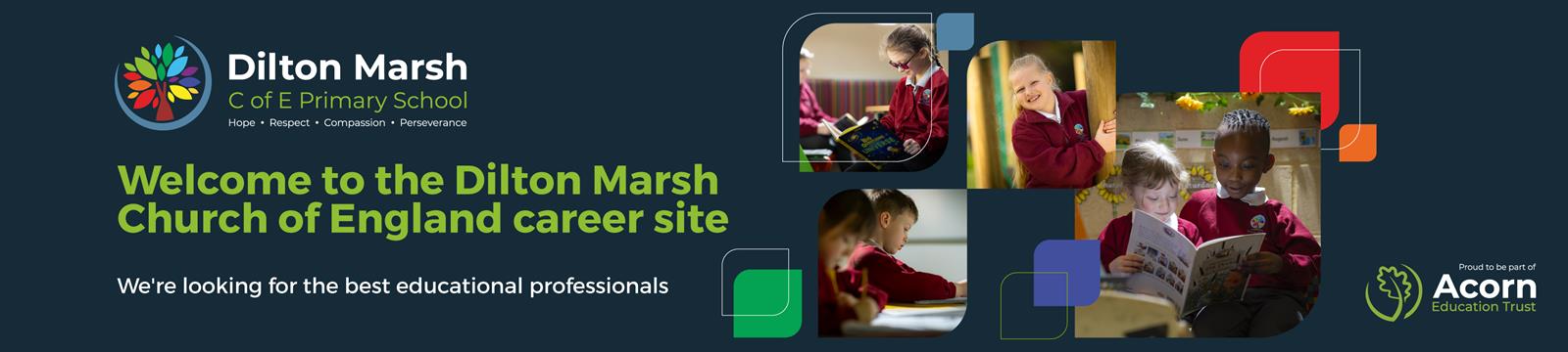 We are a happy and popular, single form entry, primary school, educating children between the ages of 5 and 11. Located in the charming village of Dilton Marsh, we have strong relationships with the local community and Holy Trinity Church. Our staff are dedicated to providing a safe, happy, caring, creative and nurturing learning environment, where everyone is valued as an individual and encouraged to become independent and resilient learners. Our strong Christian ethos of tolerance and respect flows through the whole school. As a founding member of Acorn Education Trust in 2014, we work closely with other schools within the Trust to provide the best possible education, opportunities and support for our young people. In November 2023, we were proud to achieve a ‘Good’ Ofsted rating in all categories, with inspectors praising our staff for their ‘high expectations for all pupils’.